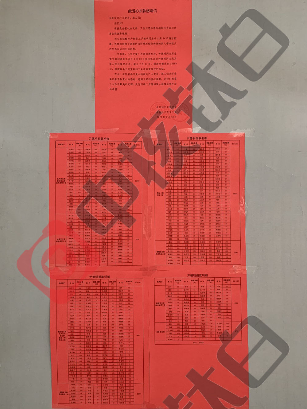 020年8月24日,金星钛白公司硫酸生产部尹德明同志经市中心医院确诊肝脏内多发转移瘤,残酷的病情与高额的治疗费用给他个人及其家庭带来极大的压力和困难。尹德明同志所在党支部和基层工会向公司党委、工会汇报之后,公司党委、工会研究决定,由硫酸党支部和清洁基层工会向全体党员、职工发出“爱心捐款倡议书”。