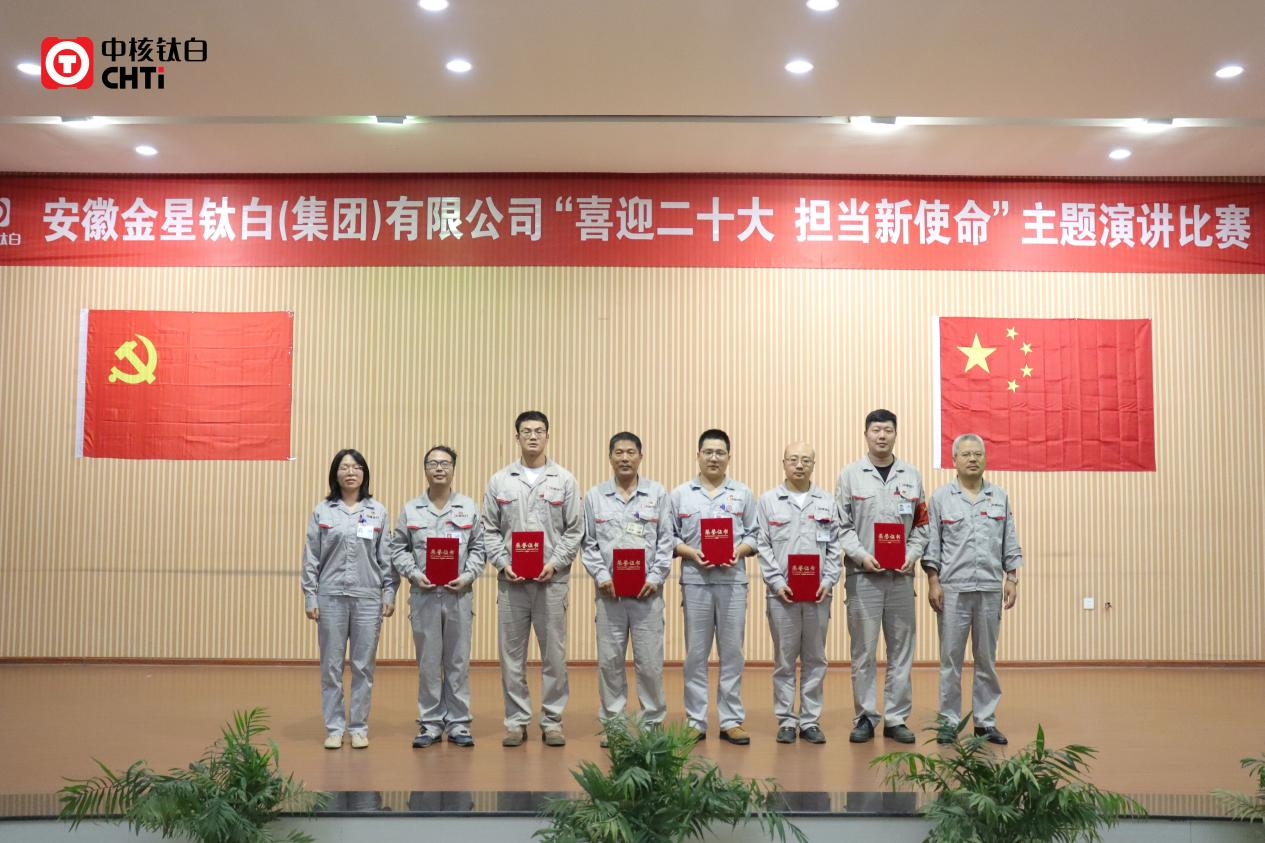 为迎接党的二十大胜利召开,在“十一”国庆和中核钛白厂庆来临之前,金星钛白公司于9月15日举办了“喜迎二十大 担当新使命”职工主题演讲比赛活动。公司全体管理干部、党员代表共100余人观看比赛。比赛由公司工会主席陈曼琳主持,公司党委书记梅可春,副总经理李耀瑛、李大伟、朱肖锋,党委成员张修臻、李庆、朱士中及一线职工代表吴先军担任评委。11名选手齐聚公司食堂大厅,为大家奉献了一场精彩的演讲比赛。
